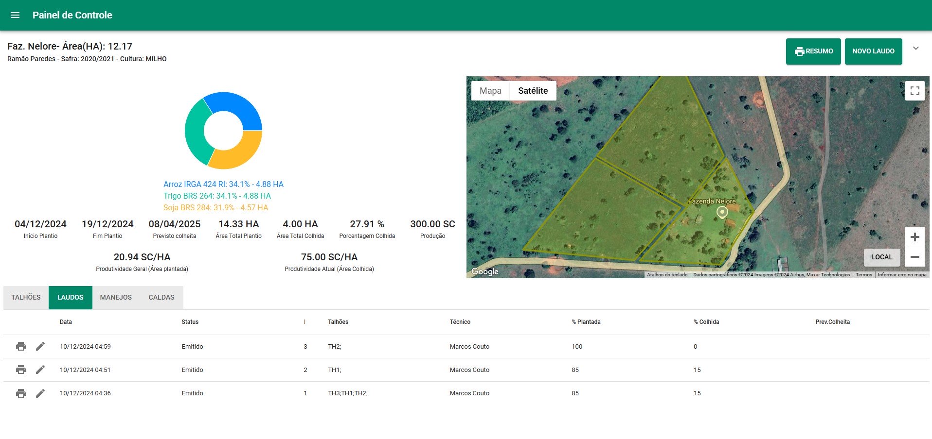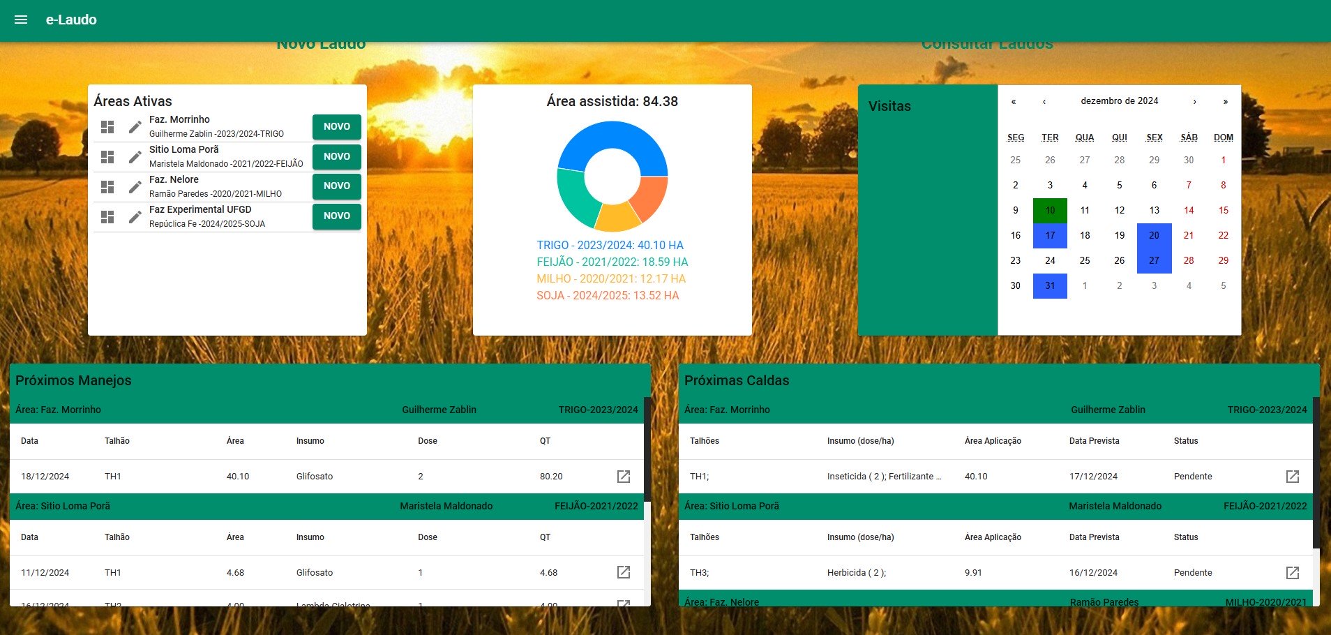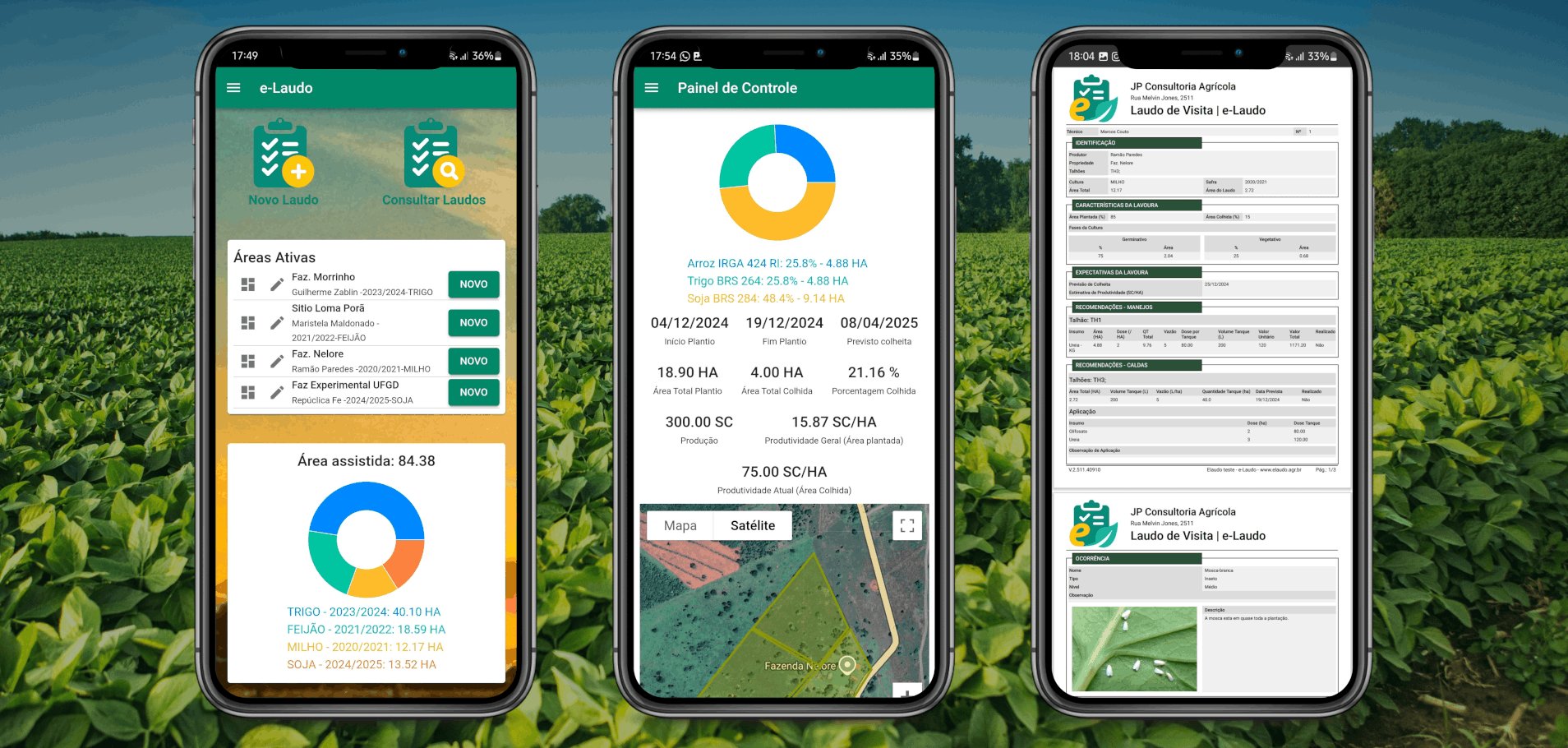 A plataforma e-Laudo facilita a padronização de laudos, eliminando o uso de papel e o retrabalho de transferir informações do campo para o computador. Funciona sem a necessidade de internet e permite a elaboração rápida e fácil de laudos, incluindo fotos georreferenciadas, recomendações de manejo, parecer técnico, dados de plantio e colheita. Além disso, oferece recursos como a distribuição de áreas assistidas entre os técnicos da equipe, suporte em plataformas web, Android e iOS, e a possibilidade de o produtor receber laudos diretamente no aplicativo, gerados em PDF.